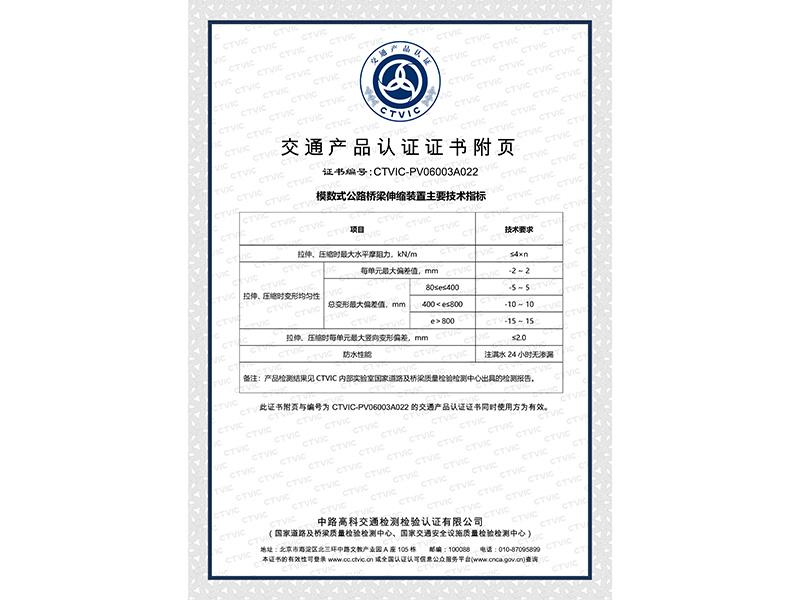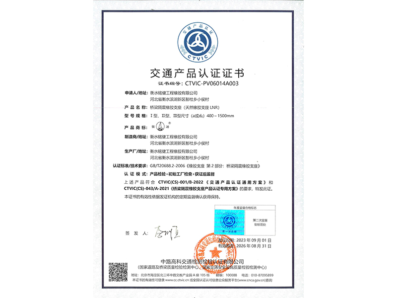 • 桥梁隔震橡胶支座(LNR)交通产品认证证书
